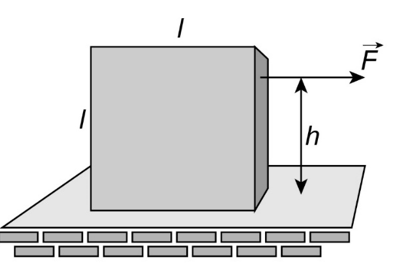 Question:A cube of side lrests on a rough floor. It is subjected to a steady horizontal pull F, exerted a distance h above the floor as shown in Fig. 9–79. As F is increased, the block will either begin to slide, or begin to tip over. Determine the coefficient of static friction\({\mu _{\rm{s}}}\)so that (a) the block begins to slide rather than tip; (b) the block begins to tip. [Hint: Where will ‘’the normal force on the block act if it tips?]