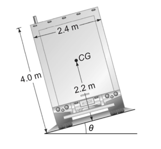 Question:The center of gravity of a loaded truck depends on how the truck is packed. If it is 4.0 m high and 2.4 m wide, and its CG is 2.2 m above the ground, how steep a slope can the truck be parked on without tipping over (Fig. 9–81)?