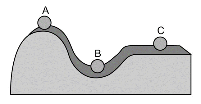 Name the type of equilibrium for each position of the ball in Fig. 9–40.